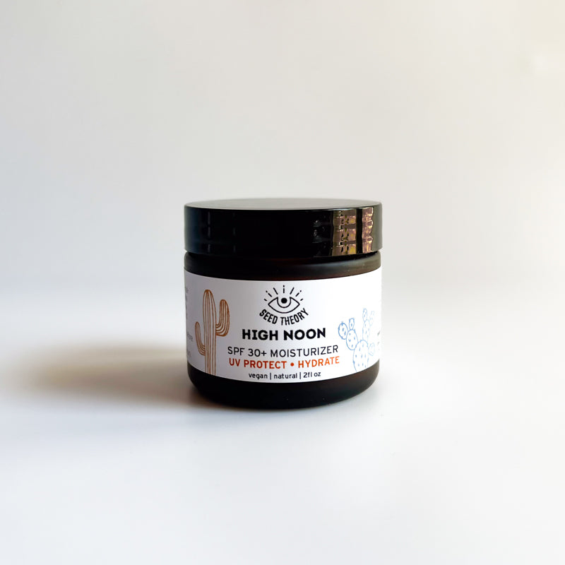 High Noon Daily SPF Moisturizer™ is our plant based formula gives you all-day protection from sun damage in a fast-absorbing, weightless formula. Vitamin B and E complexes fight free-radicals to help prevent damage from the sun, ceramide complex boosts your natural defense against pollutants + environmental stress, and daikon extract helps extend the all-day protection for a truly broad spectrum SPF that’s almost entirely plant based!