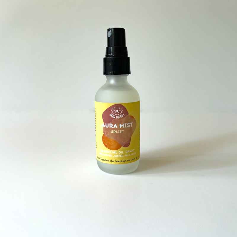 Meet Aura Mist: Uplift. Part of our functional aromatherapy line. A refreshing, hydrating mood spray designed to give you a quick refresh and cleanse your chakras so you can step unlock your power and improve your sense of wellbeing.